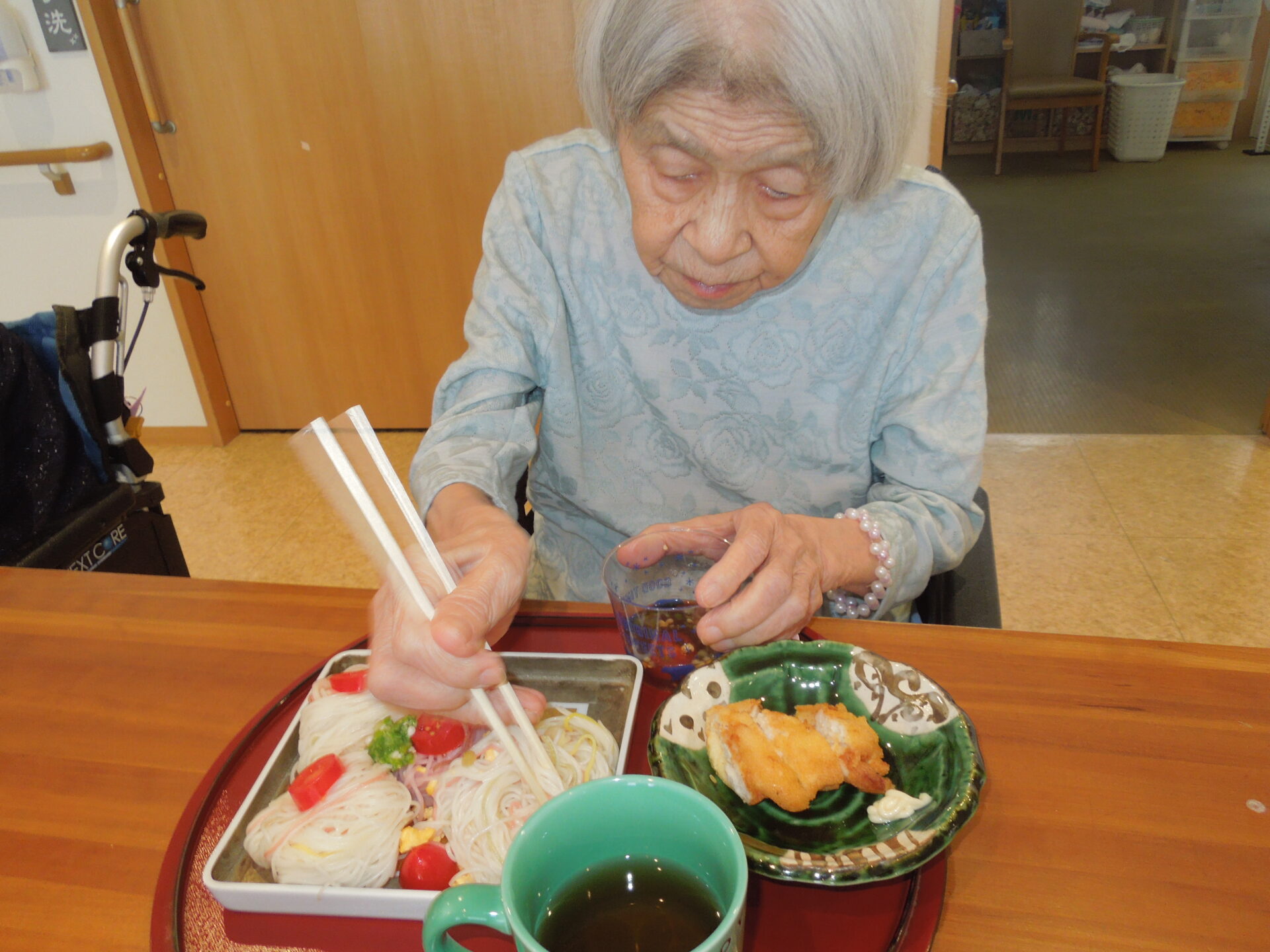 目の前に並んだそうめんをご覧になると「うわぁ~綺麗♡食べるのもったいないわ。」と仰る方、おかわりされて普段より食欲旺盛な方など、皆様とても喜んで召し上がられました。