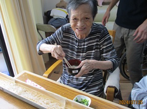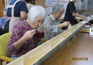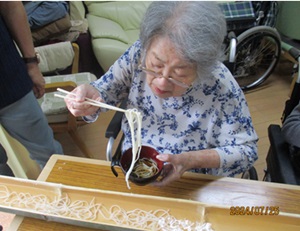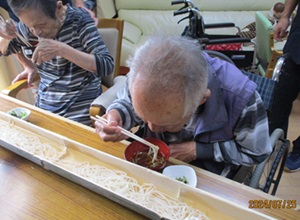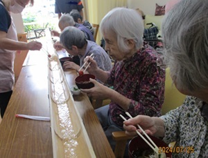そうめん流しでも一生懸命そうめんを箸でつかんで、食べられていました。