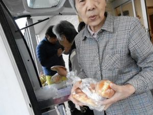 移動パン屋 グループホーム心のめ 2018.03.25 グループホーム心の瞳 「金の麦」さんがパンの販売に来られました。 やきそばパン、サラダパン、あんぱん、アップルデニッシュ等、手に持ちきれないほどたくさんのパンを買いました。 「どれにしようかな?」^m^
