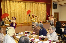 お楽しみ会では、文ちゃん一座の芸を皆さん笑顔で楽しまれていました。