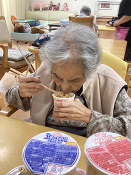 1人の利用者さんが昔カップヌードルを食べたという話しから、