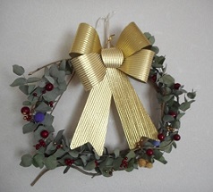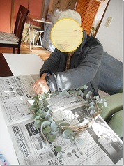 職員がユーカリの木を持ってきてくれ、クリスマスのリースを作りました。