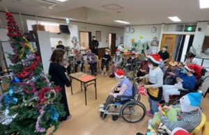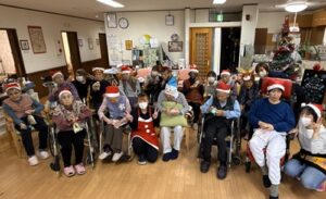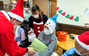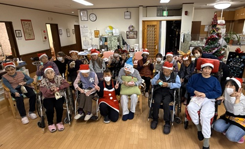 この日は、サンタさんやトナカイ、雪だるまの衣装も登場し、ご入居者さんもスタッフもとても可愛らしい雰囲気に♡