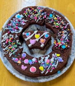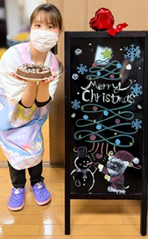 午前中は、バームクーヘンにチョコペンで模様を描き、好きな色やトッピングを選んでお菓子作りを楽しみました😊