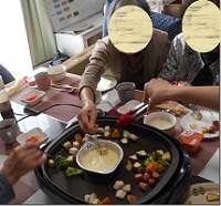 昼食にホットプレートを使用してチーズフォンデュをしました。
