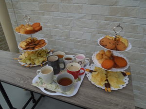 アフタヌーンティーセットに沢山のお菓子・アイス・ケーキを並べてお出しすると、「うわーすごい!」「綺麗ね」「美味しそう」と皆様目を輝かせていました。