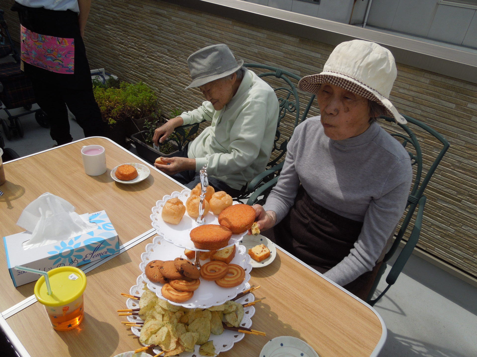 昼食を済ませた後、おやつの時間にベランダへ・・・