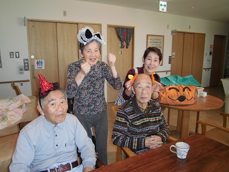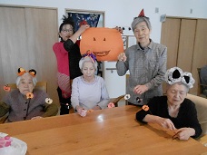 ハロウィンの意味をお話させて頂いたり、飾りつけも入居者様にお手伝い頂き、作りました\(^o^)/