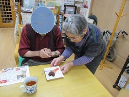 職員から、ご入居者様へチョコレートのプレゼントをしました。