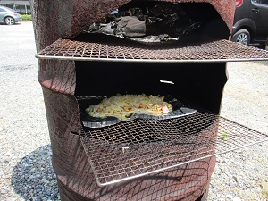 手作りのピザ窯を使って、これまた手作りのピザを焼いて