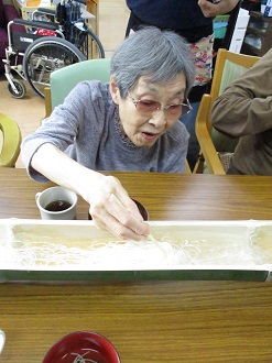 ほとんどのご入居者さんが、箸で上手にそうめんを取り食べられていました。
