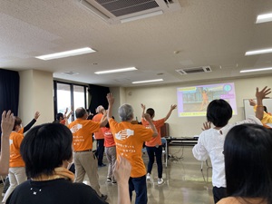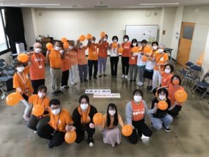 認知症支援のカラーであるオレンジ色のものを身につけ、啓発活動を行いました。