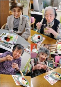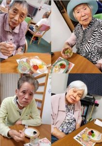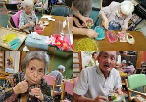 手作り✨の「みかん大福」に「色とりどりのゼリー」を利用者様 皆さんに盛り付けてもらい✨