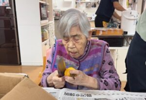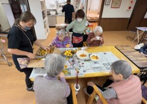 今年は秋の季節を感じてもらいながら利用者様と共に昔ながらの食文化を親しみ、