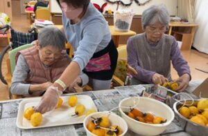 皆様で役割を持ち協力し合い干し柿を完成させました。出来上がりが大変楽しみです。