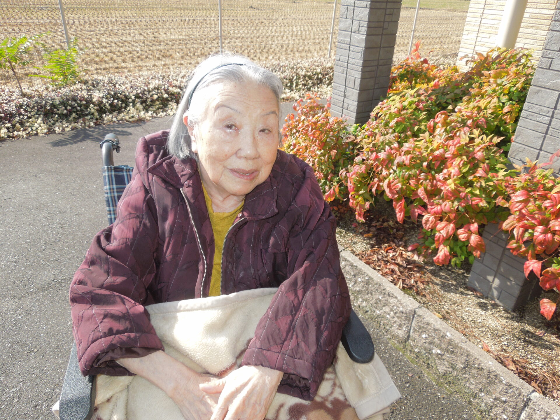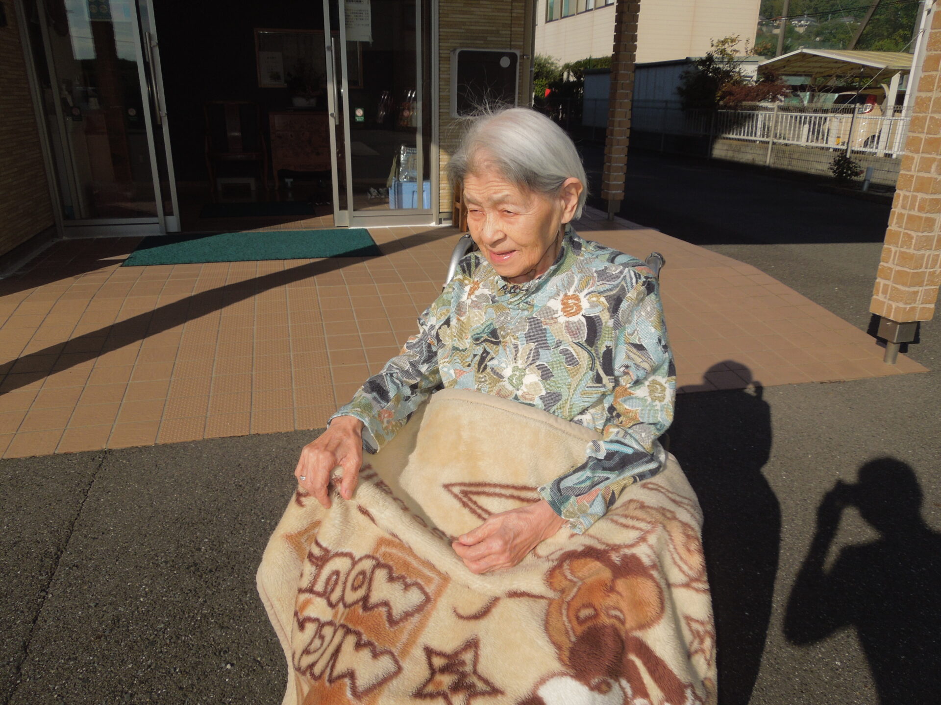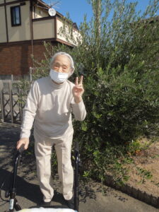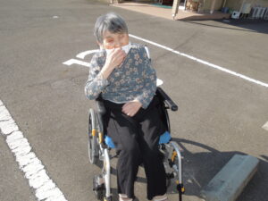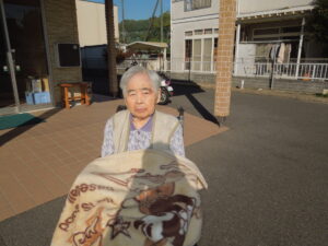 久しぶりに外の空気に触れ「寒い💦」と仰る方や、隣家の金木犀を見て「きれいじゃなぁ。ええ匂いじゃ。」と眺められる方など、外気浴を満喫されているご様子でした。