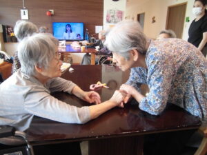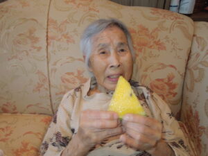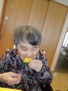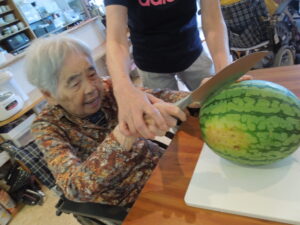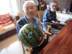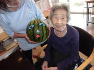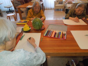 ご家族から西瓜をいただきました。 福笑い、重さ当てクイズ、デッサン🍉などをして楽しまれました♬