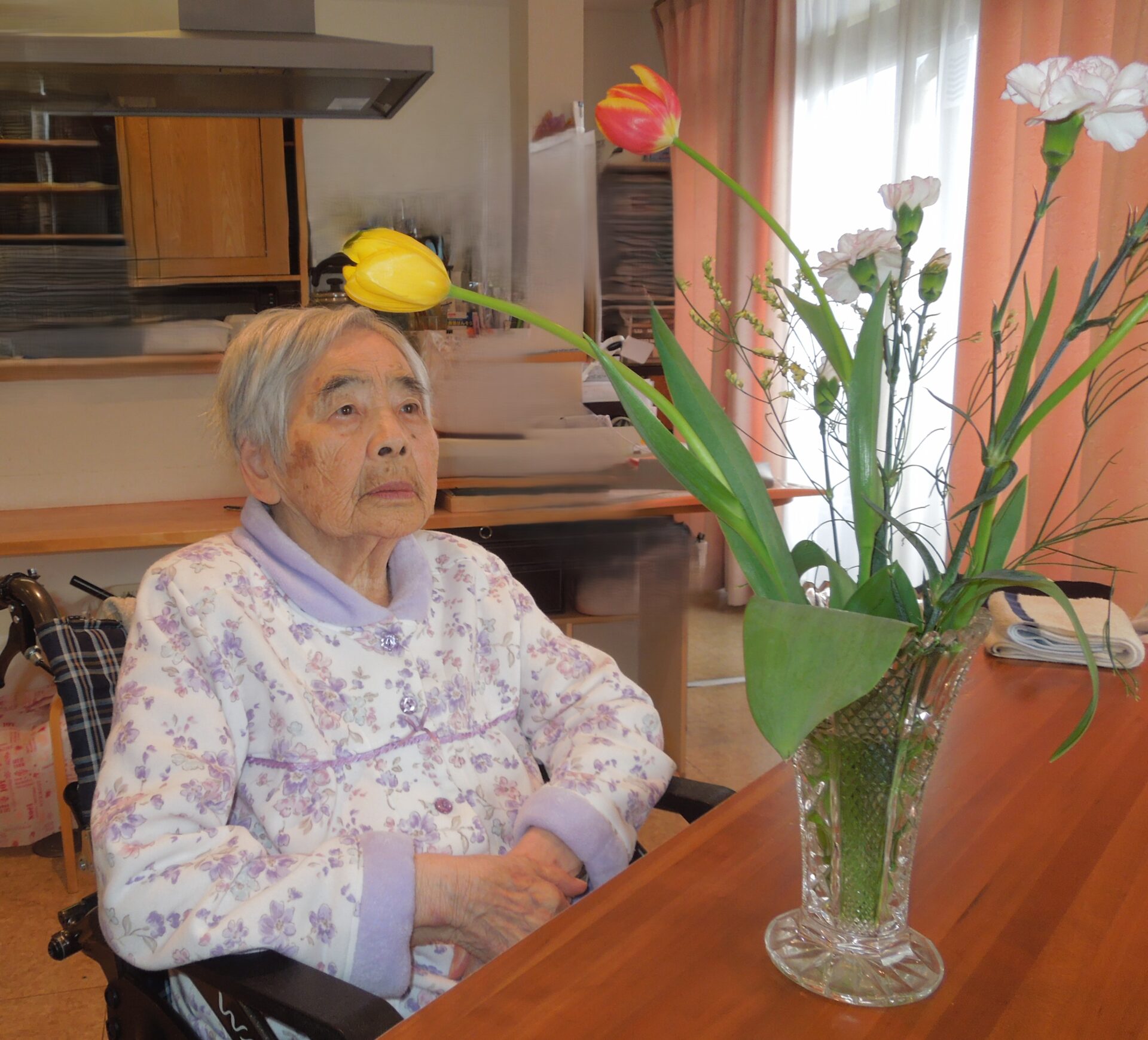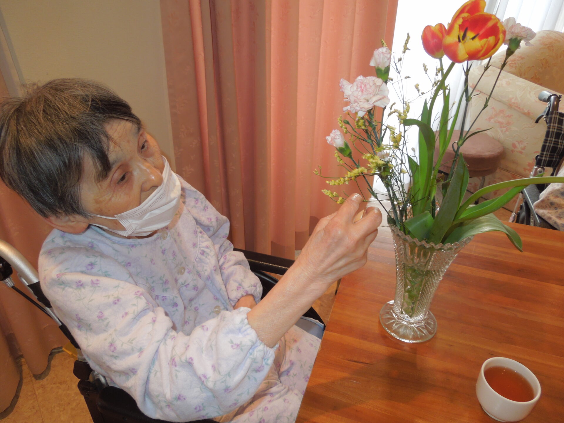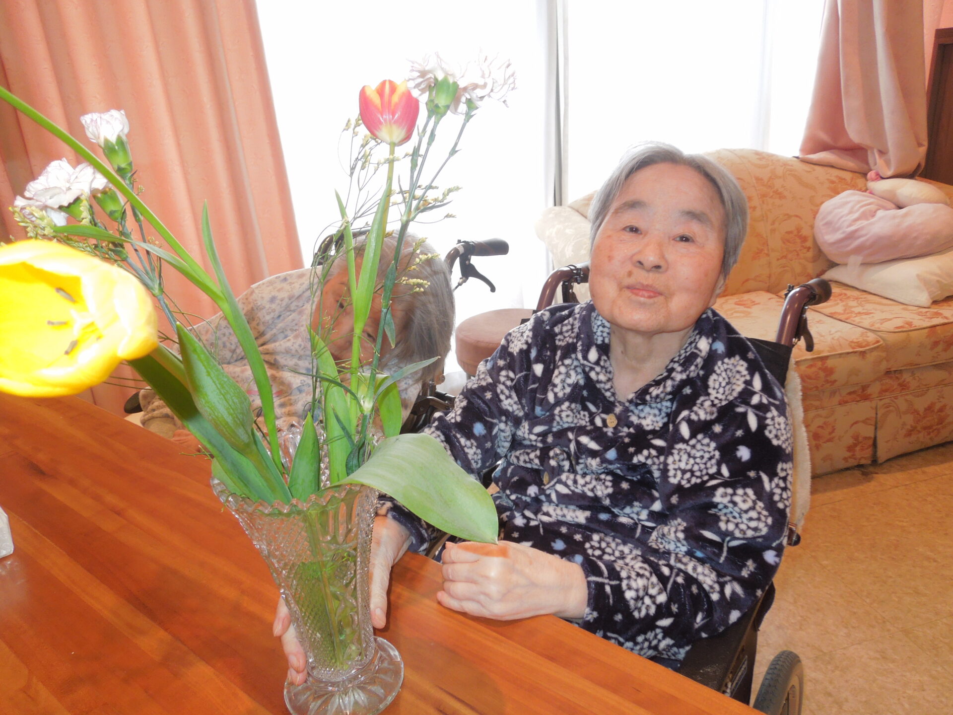 「綺麗じゃな~」「この花の名前はなんじゃったかなぁ?」「どこへ入れようか・・」などと仰りながら、季節の切り花を楽しく活けられていました🌼