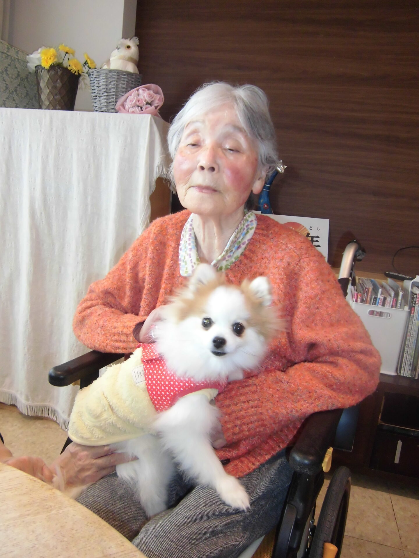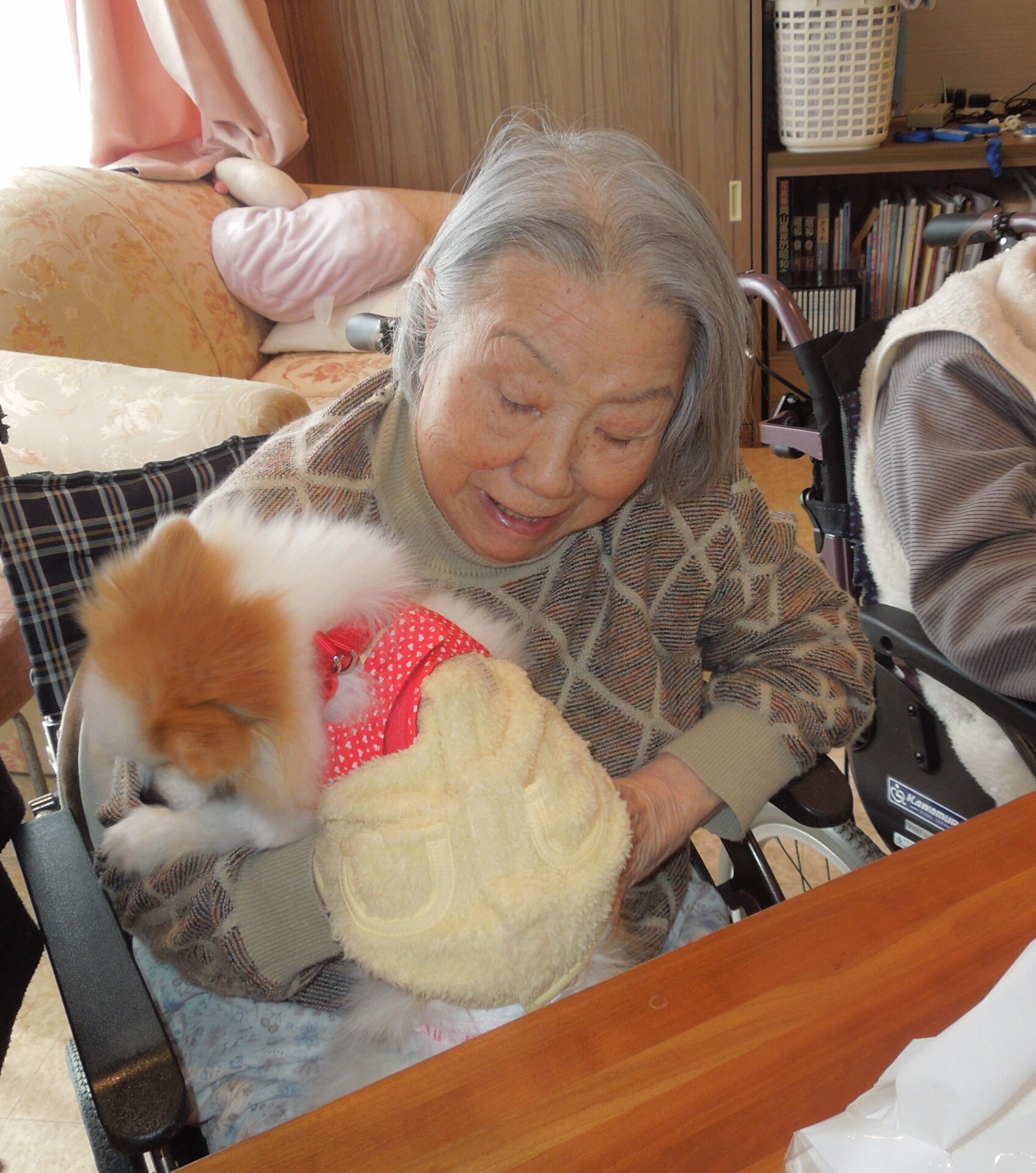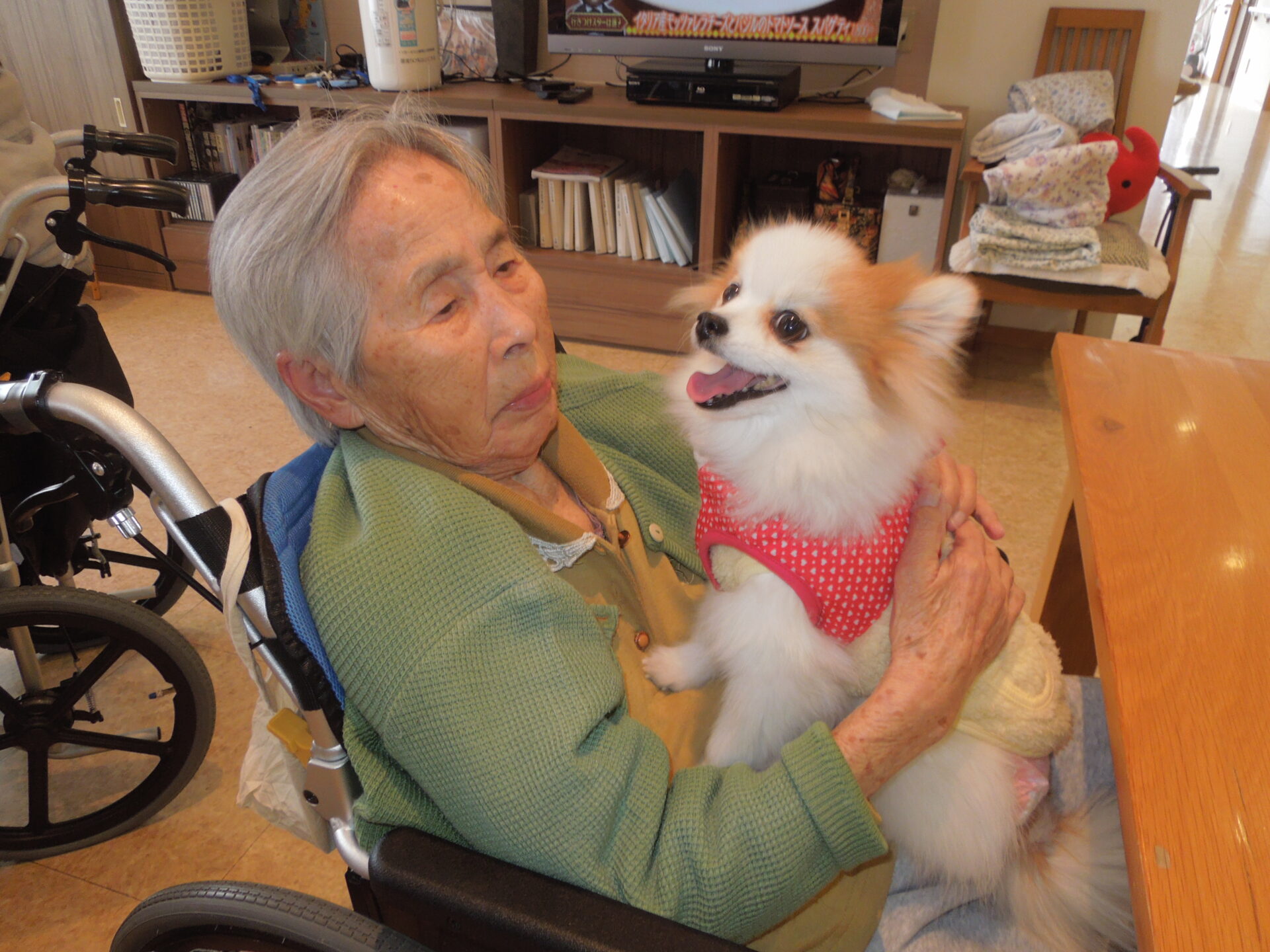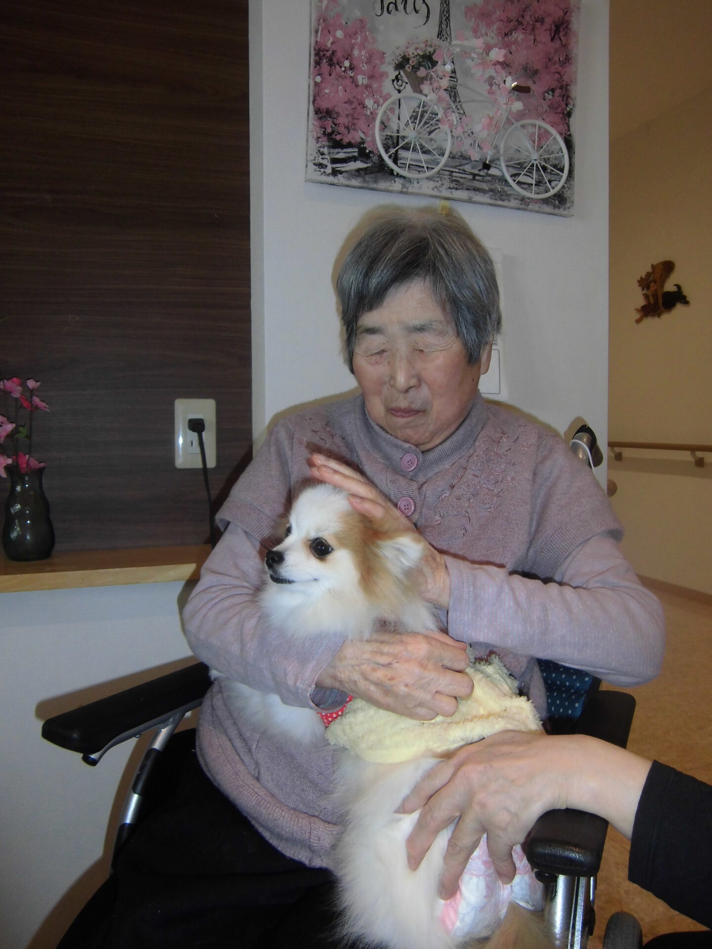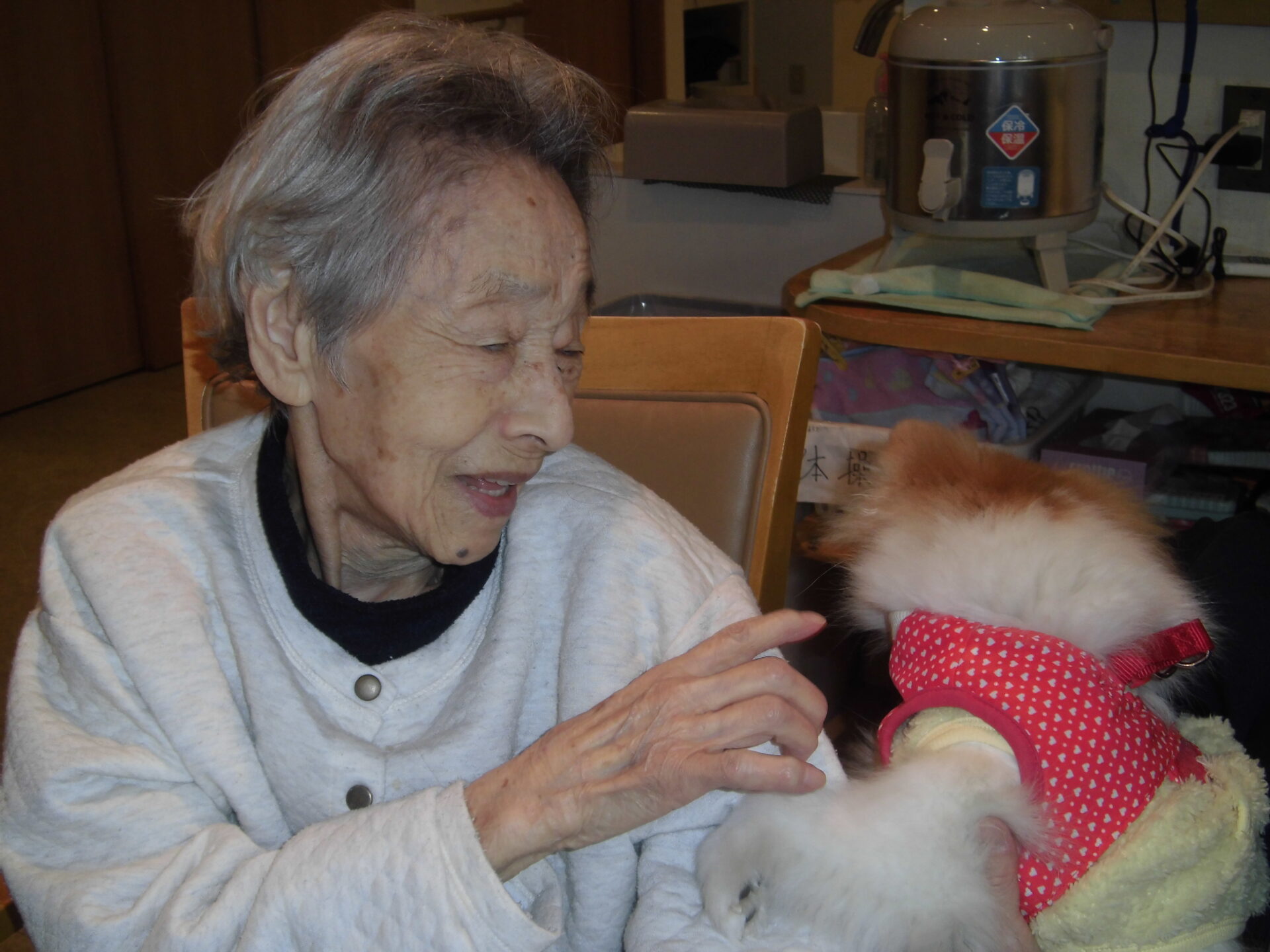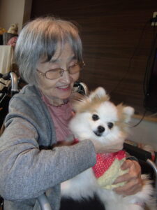 職員の家族の愛犬との触れ合い🐶 「目がクリクリじゃなぁ♡」「可愛い~♡」と満面の笑顔🥰