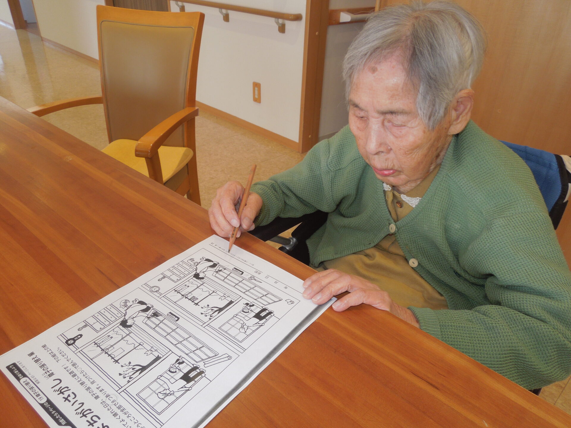 “まちがい探し”などのプリント問題をされたり、 “ホームでの写真集”をご覧になったり、 皆様それぞれがお好きなことをされて穏やかな時間が流れています💑