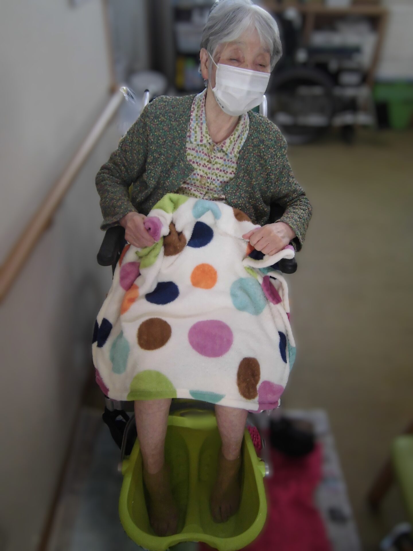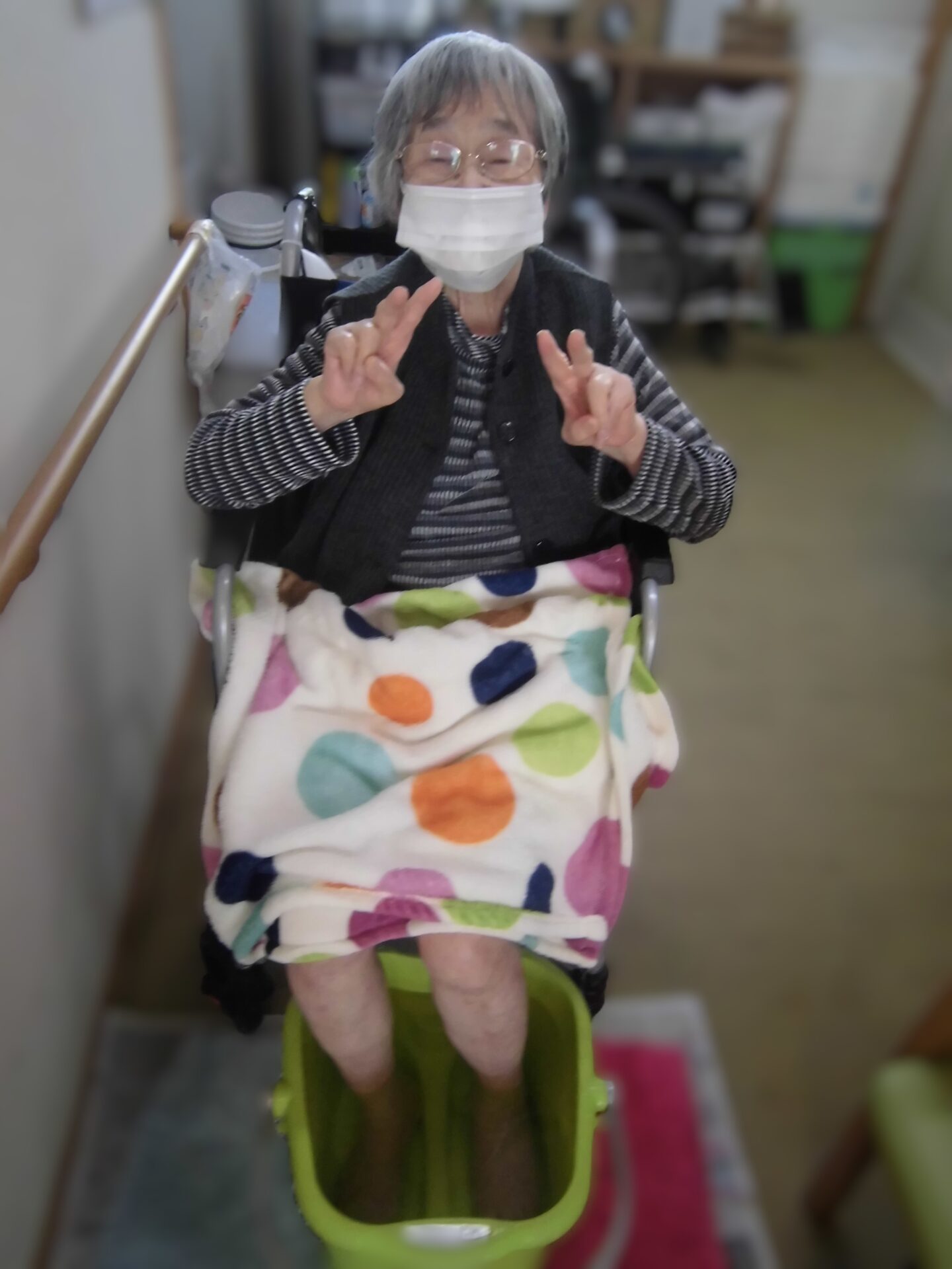 寒暖差が激しい日中は足浴で体ぽかぽか。心も温かくなります。「気持ちいいわ~ありがとう💛」