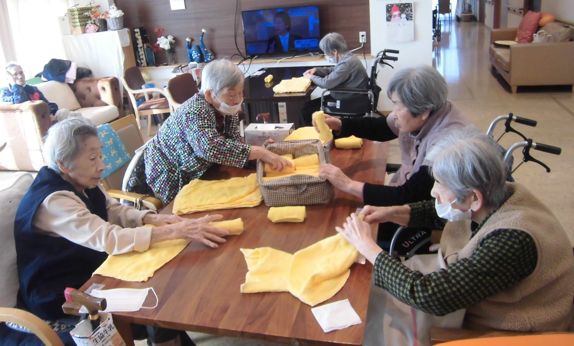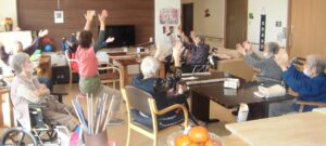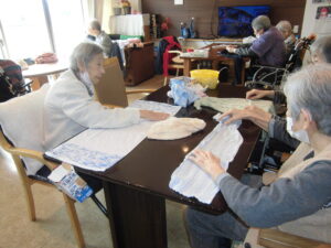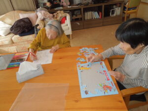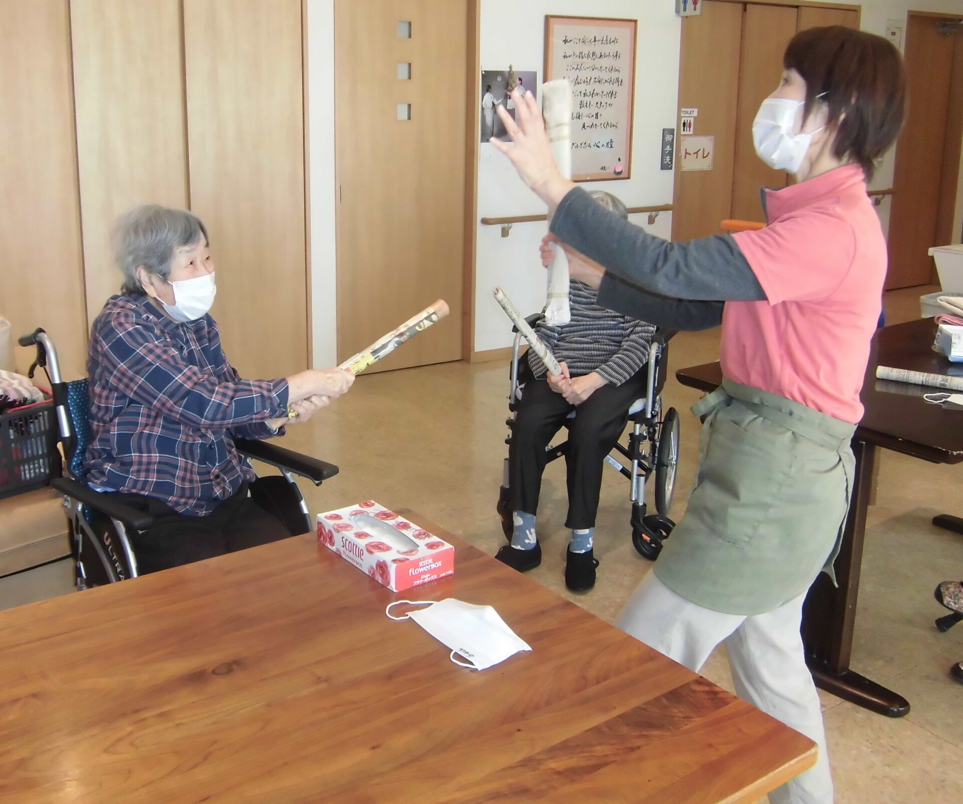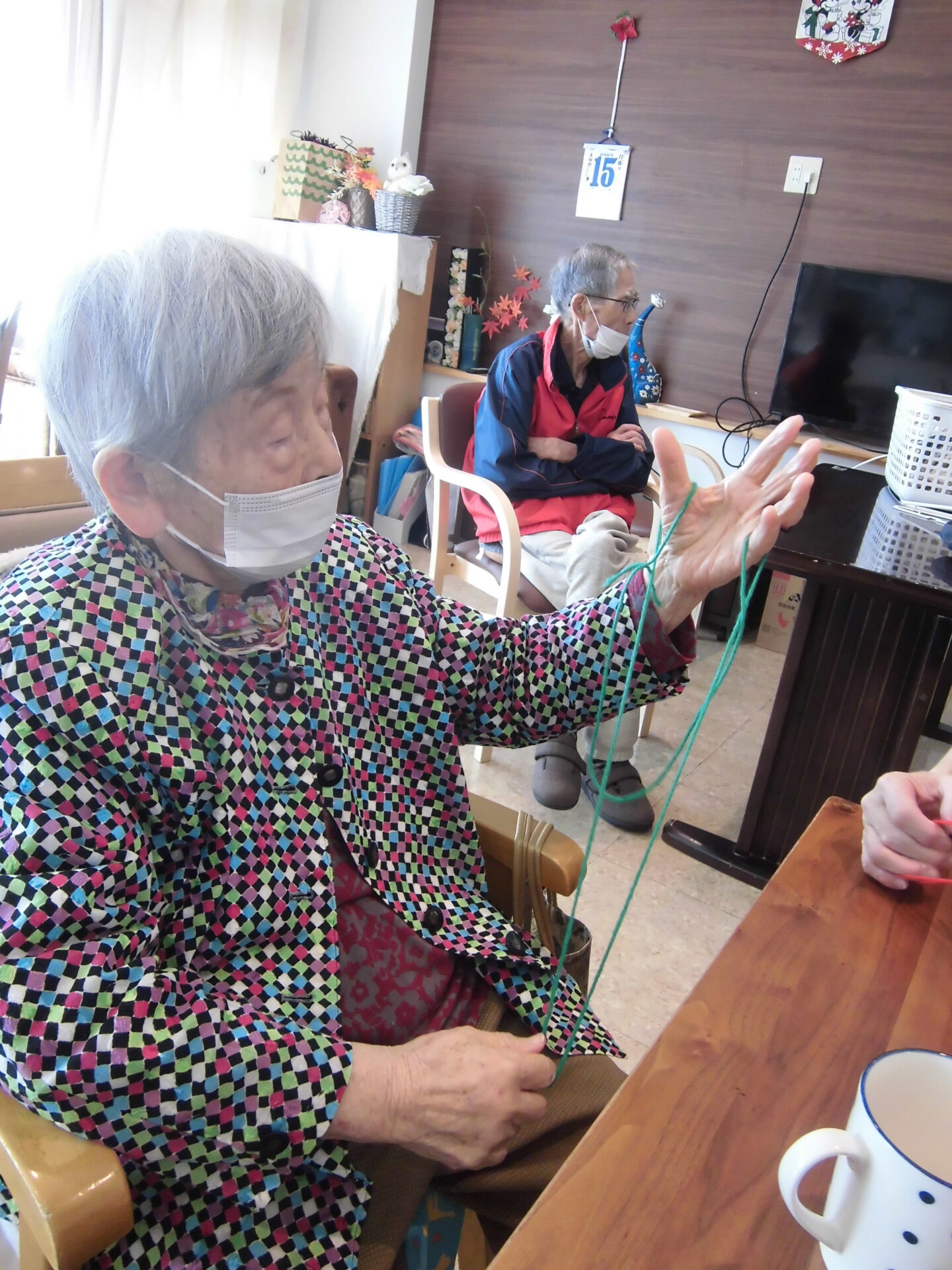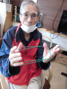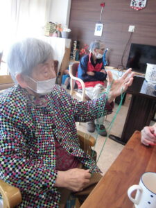 「懐かしい、久しぶりにするわ(^^♪」「どうじゃったかなぁ❓」などとご入居者様や職員との会話が弾み、ご入居者様同士で教えあったり、職員に教えてくださったりして、より一層交流が深まった時間でした💑