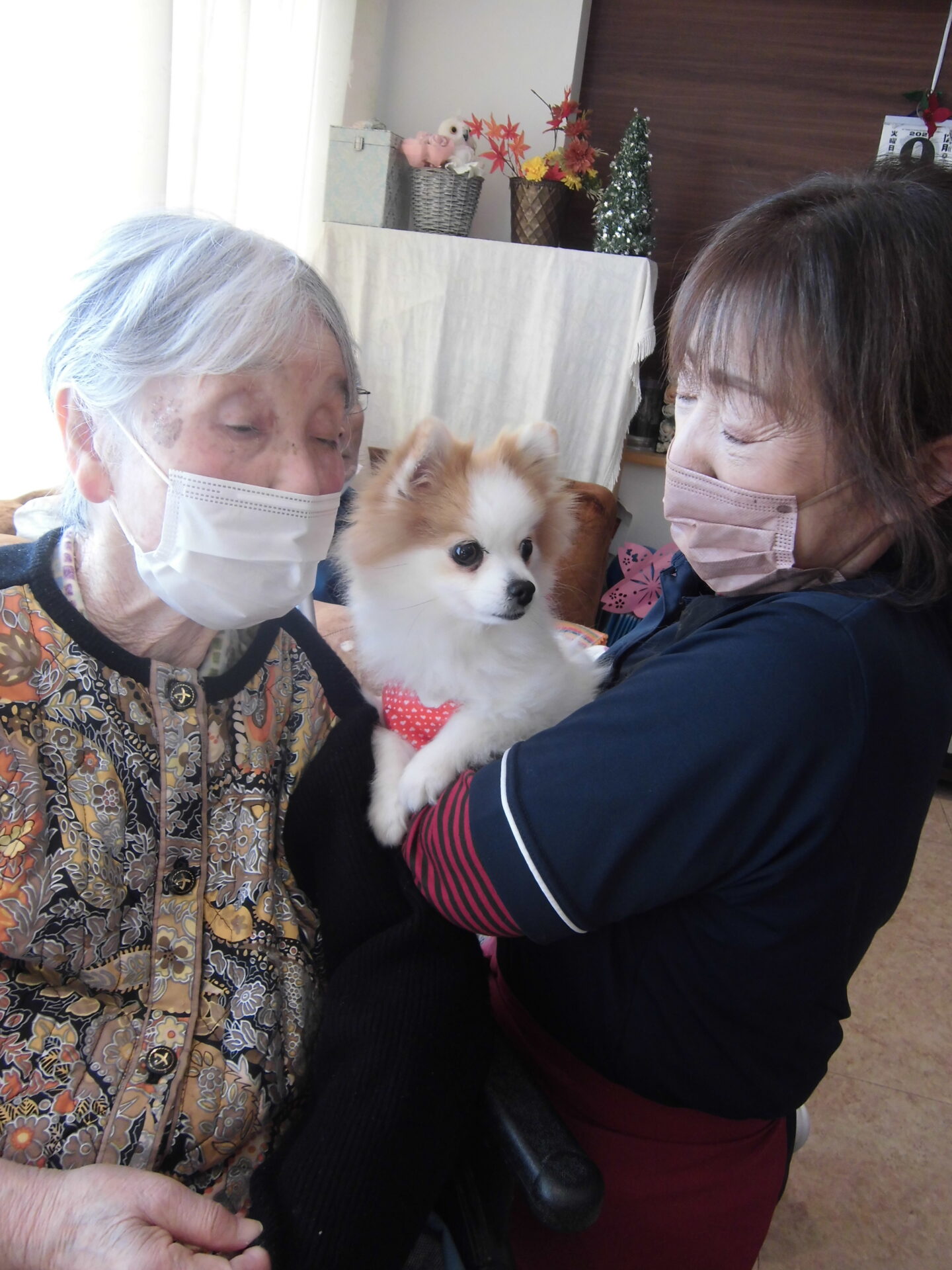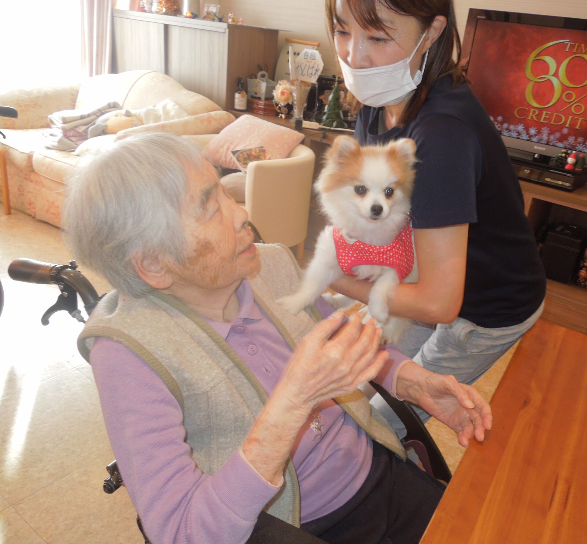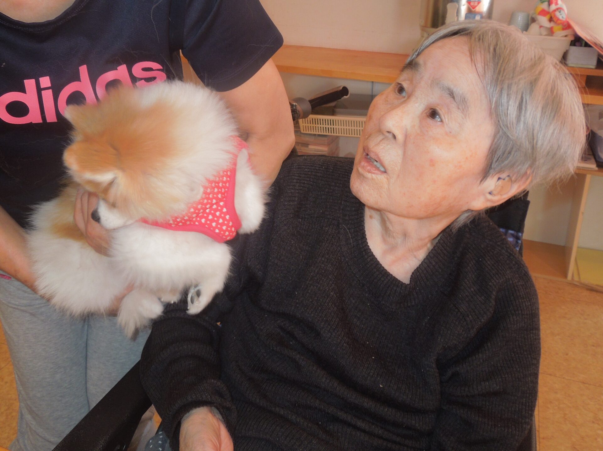 職員の愛犬と触れ合いタイム🐶 「可愛い~💗」と無邪気な笑顔を見せてくださいました。