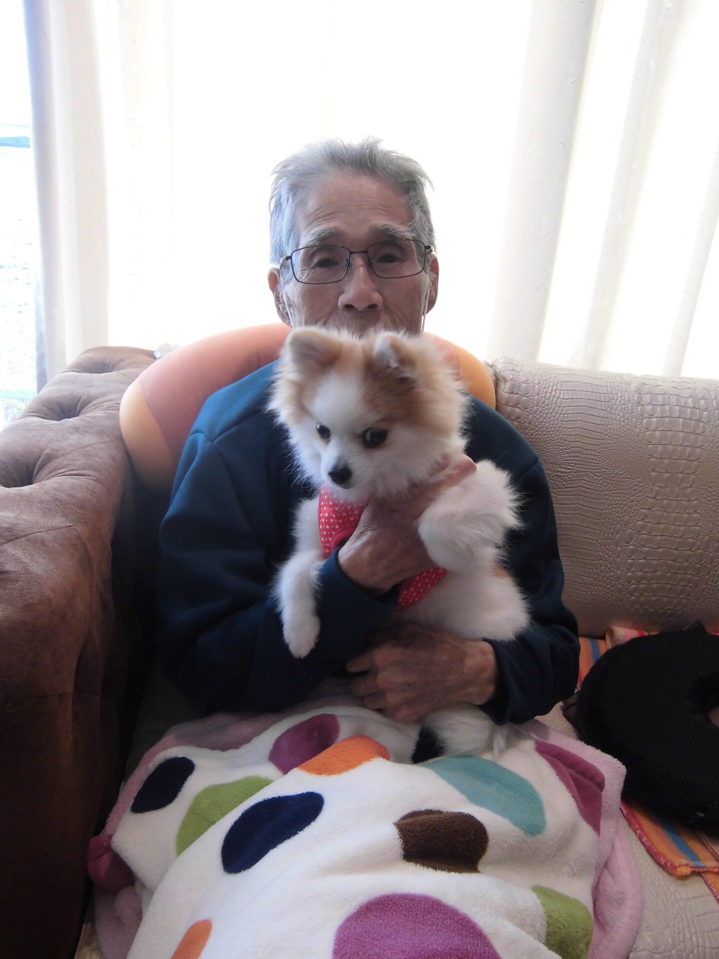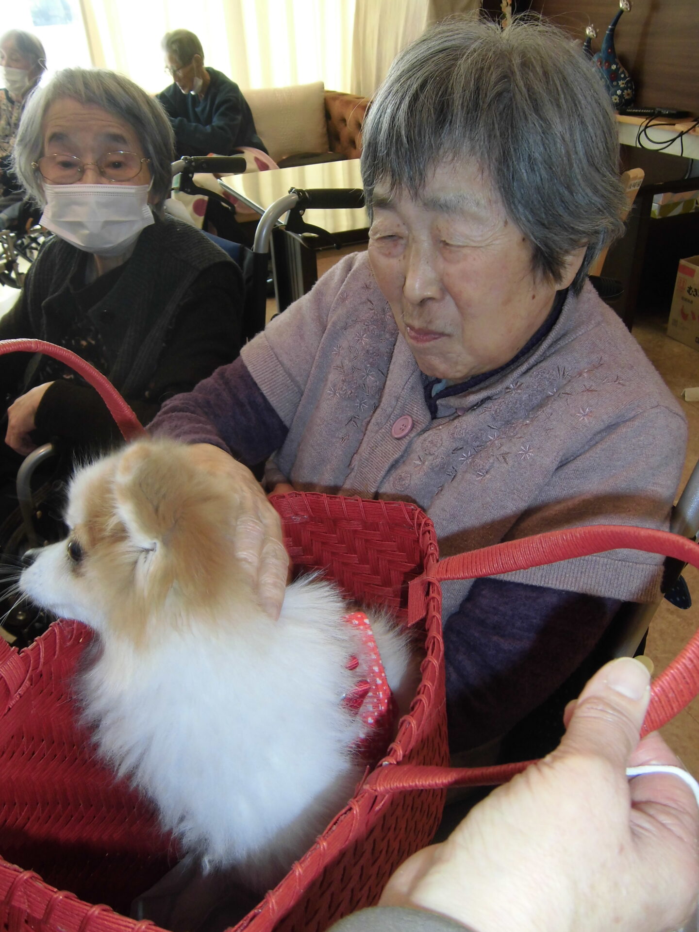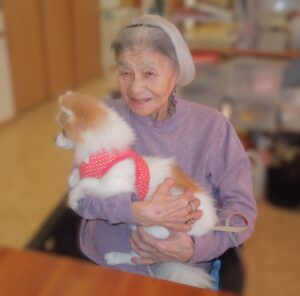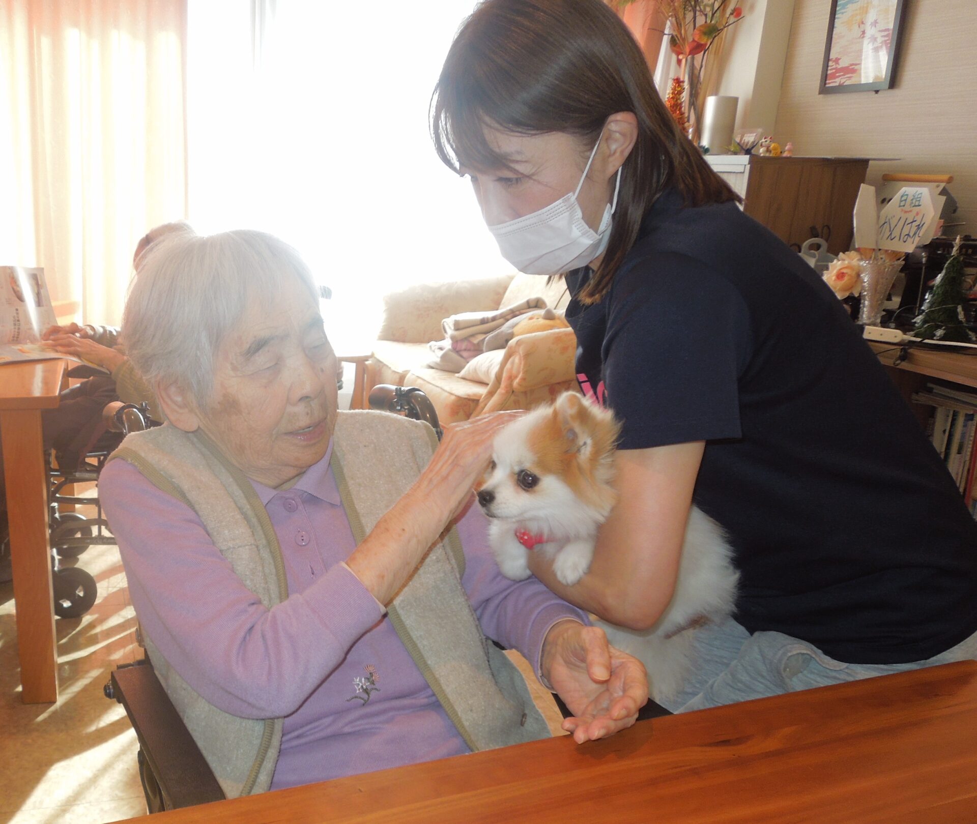 職員の愛犬と触れ合いタイム🐶 「可愛い~💗」と無邪気な笑顔を見せてくださいました。