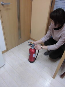 今回は1階事務室より漏電したとの想定。皆様落ち着いて参加できました。