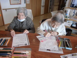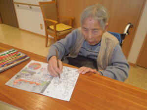 フリータイム♡ 大人の色塗り、計算問題、将棋など、ご自分のお好きなことに夢中🥰