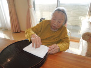 日課の体操に一生懸命取り組まれたり、快くお手伝いをしてくださったり・・