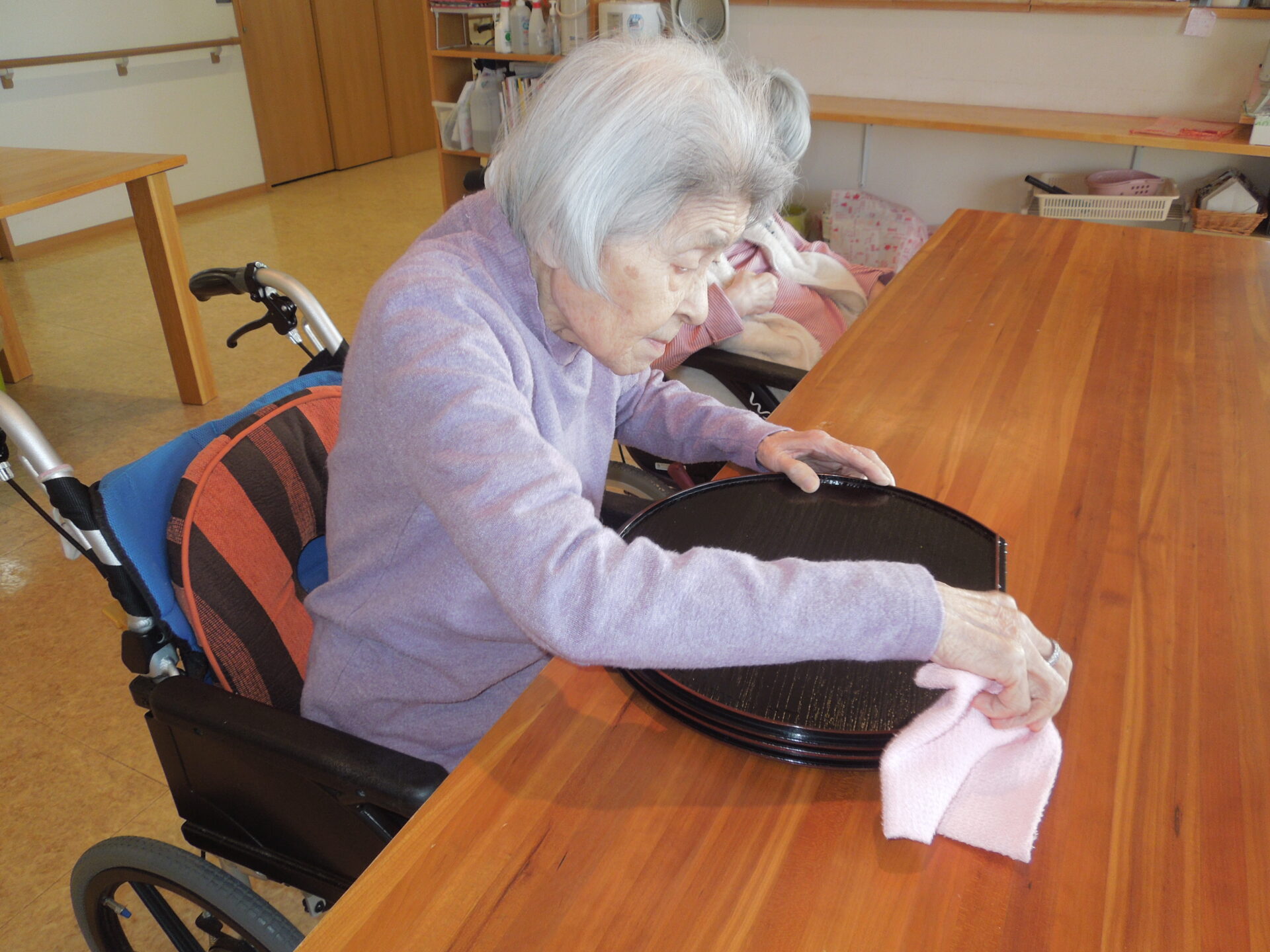 日課の体操に一生懸命取り組まれたり、快くお手伝いをしてくださったり・・