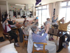 元気よく体操。皆さん意欲的です!
