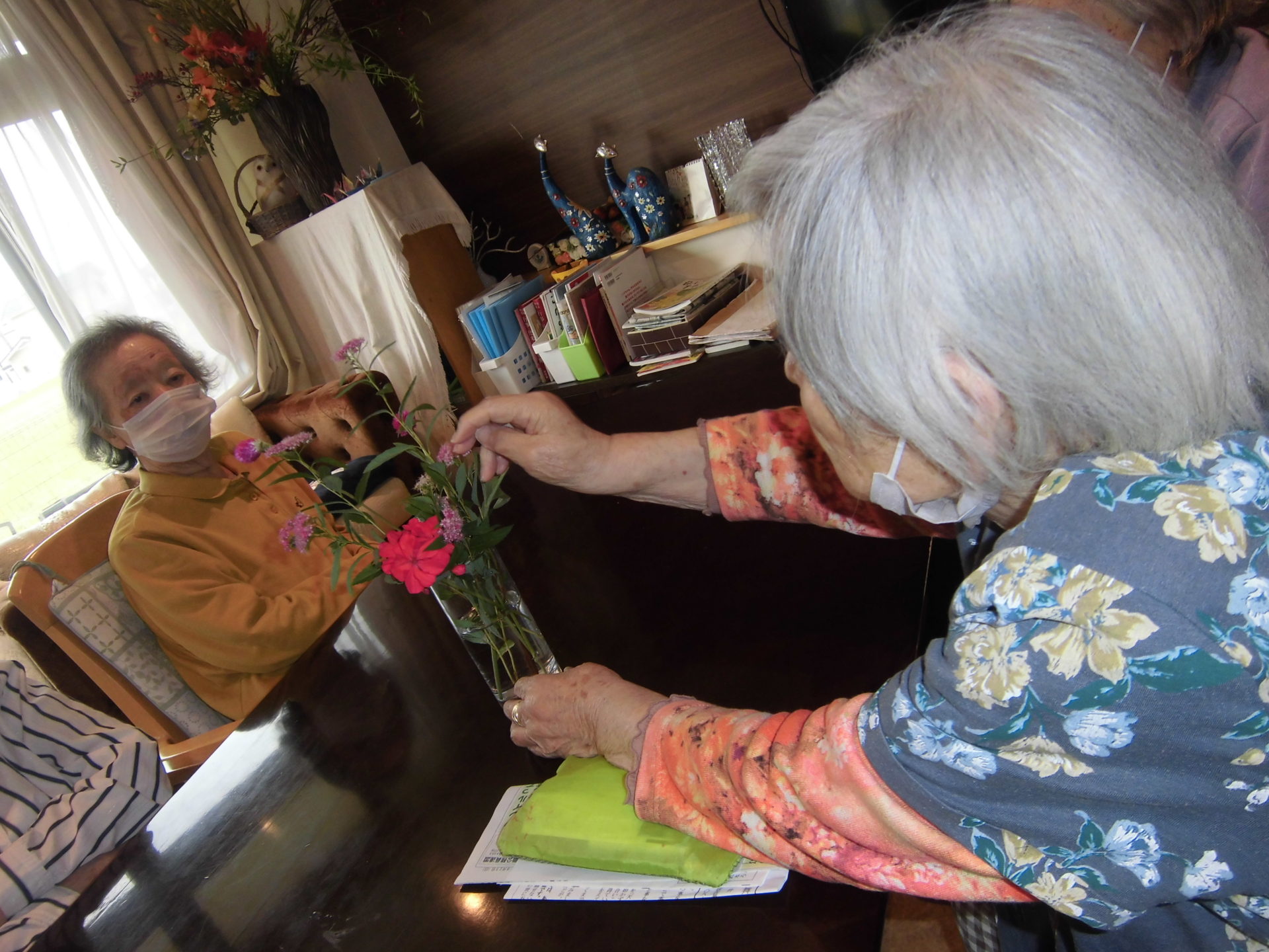 お花を生けられています。素晴らしい感性で上手に生けてくださっています。