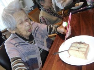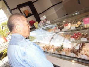 母の日の買い物 グループホーム心のめ 2018.06.28 グループホーム心の瞳(め) A棟 昼食後、“6人のお母さん”の為に白十字まで行き、ケーキを選ぶA様。 たくさんのケーキの中からチョコレートケーキを買いました。