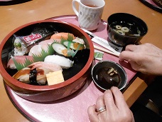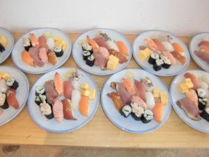 夕食は豪華にお寿司を出前しました。花束に見立てた手巻き寿司入りです。