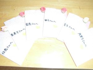 “6人のお母さん”ににぎり寿司とチョコレートケーキ、バラ一輪(芳香剤。入浴剤にもなるそうです!)、職員手作りのメッセージカードを贈りました。