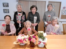 ホームからも日頃の感謝の気持ちを込めてカーネーションの花束を贈りました。