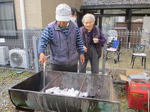 焼き芋をホームで焼いて、熱いホクホクを食べていただきます✨
