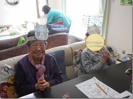 今年は、ご利用者様に自分のお面の色塗りをしていただきました。