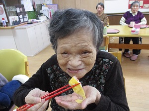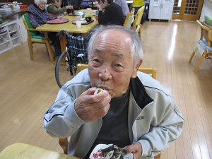 3時には、甘納豆をお出しすると、「甘くて美味しいな~」と喜ばれました😊