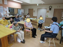皆さんが知っている懐かしい歌に合わせてギターやピアノを弾いてくださり