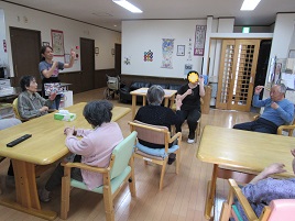 ご入居者様とグーパー体操等の手遊びや、紙芝居等のレクリエーションや