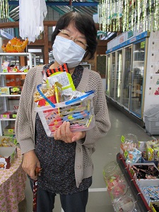 二名の入居者さんと、高校の実習生さんとで駄菓子の買い出しに行きました。