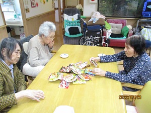 15時のおやつに、買って来た駄菓子を皆で頂きました。