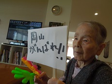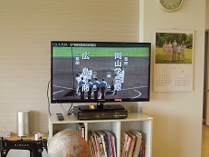 高校野球応援 グループホーム心のめ 2019.10.12 グループホーム心のめ 8/10 今日は岡山学芸館高校×広島商業との試合「岡山がんばれー!」「やったー!」「負けるなー!」点が入るたびに大きな歓声があがっていました。