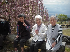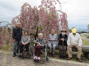 山の駅には、まだ桜が咲いており、皆で記念写真を撮ったりと、