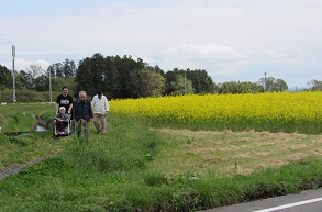 一面の菜の花の鮮やかな黄色に圧倒されていました。