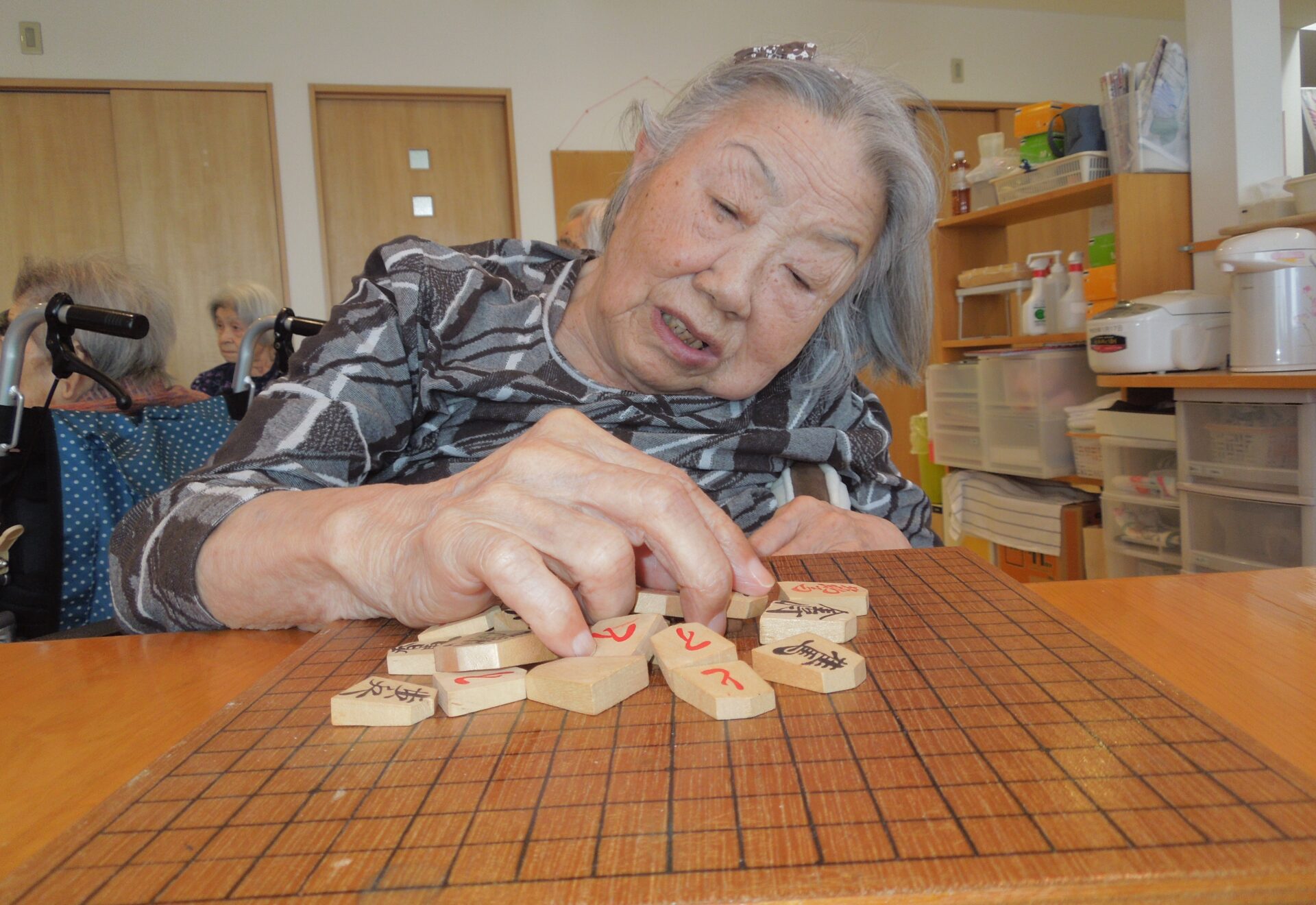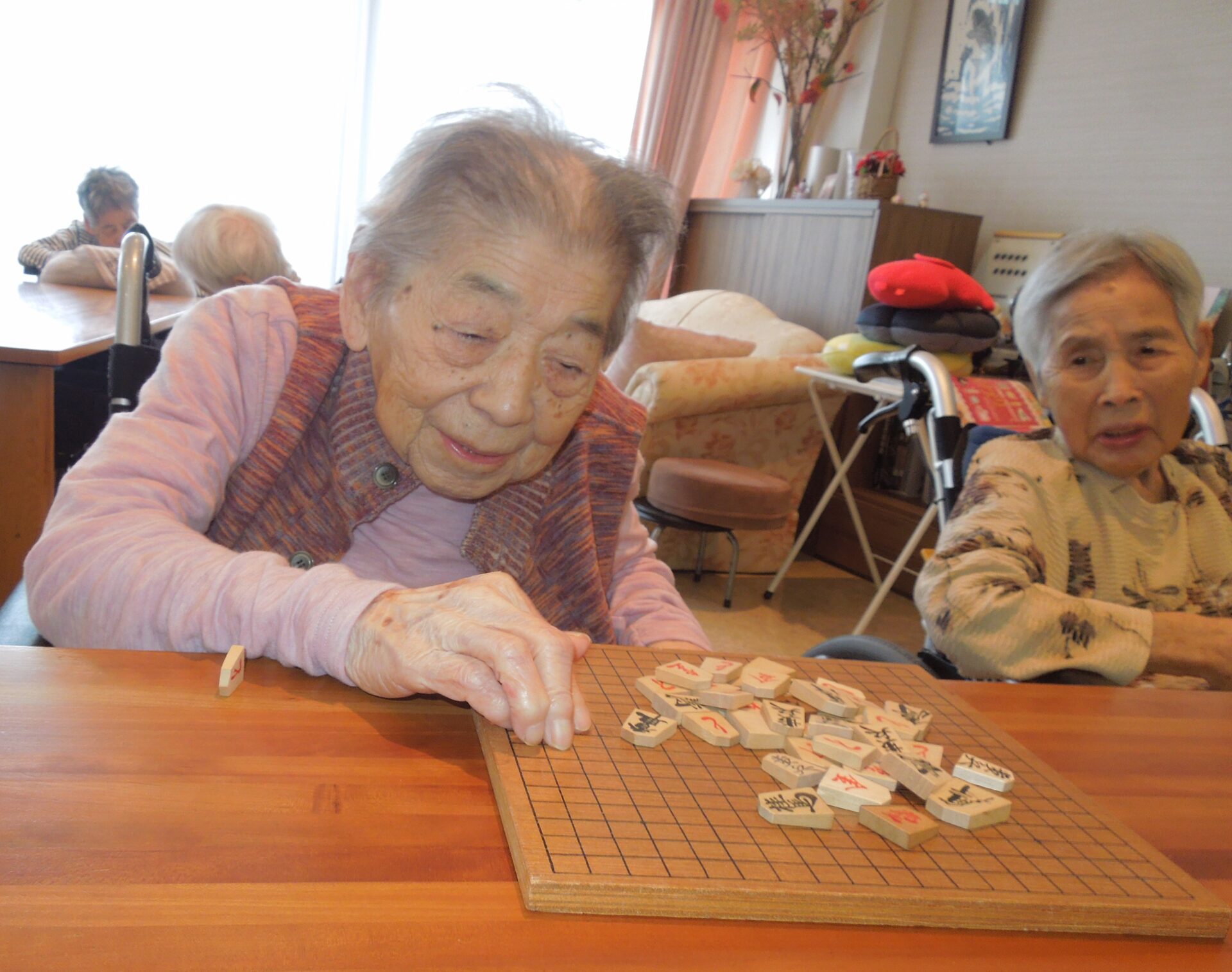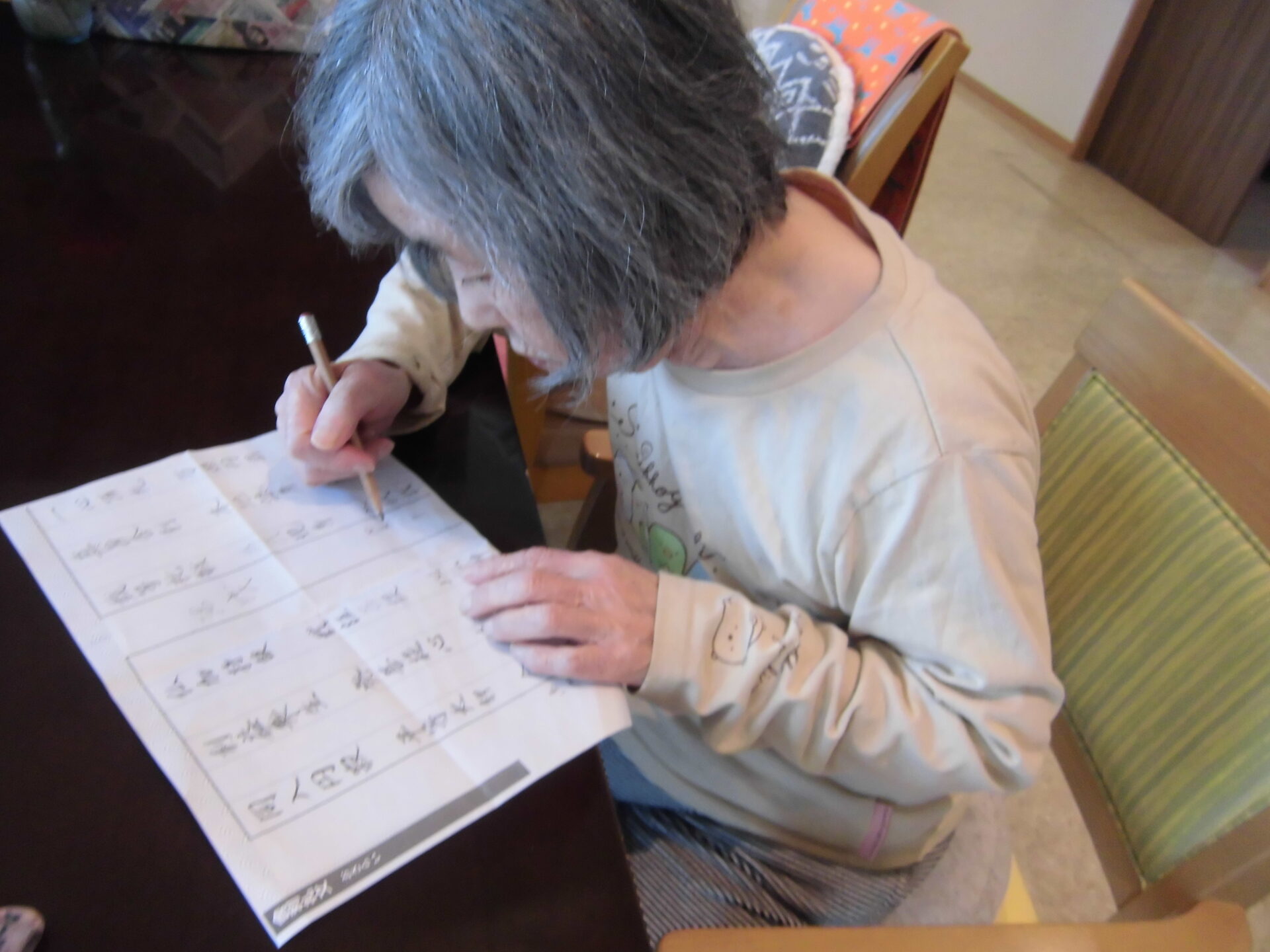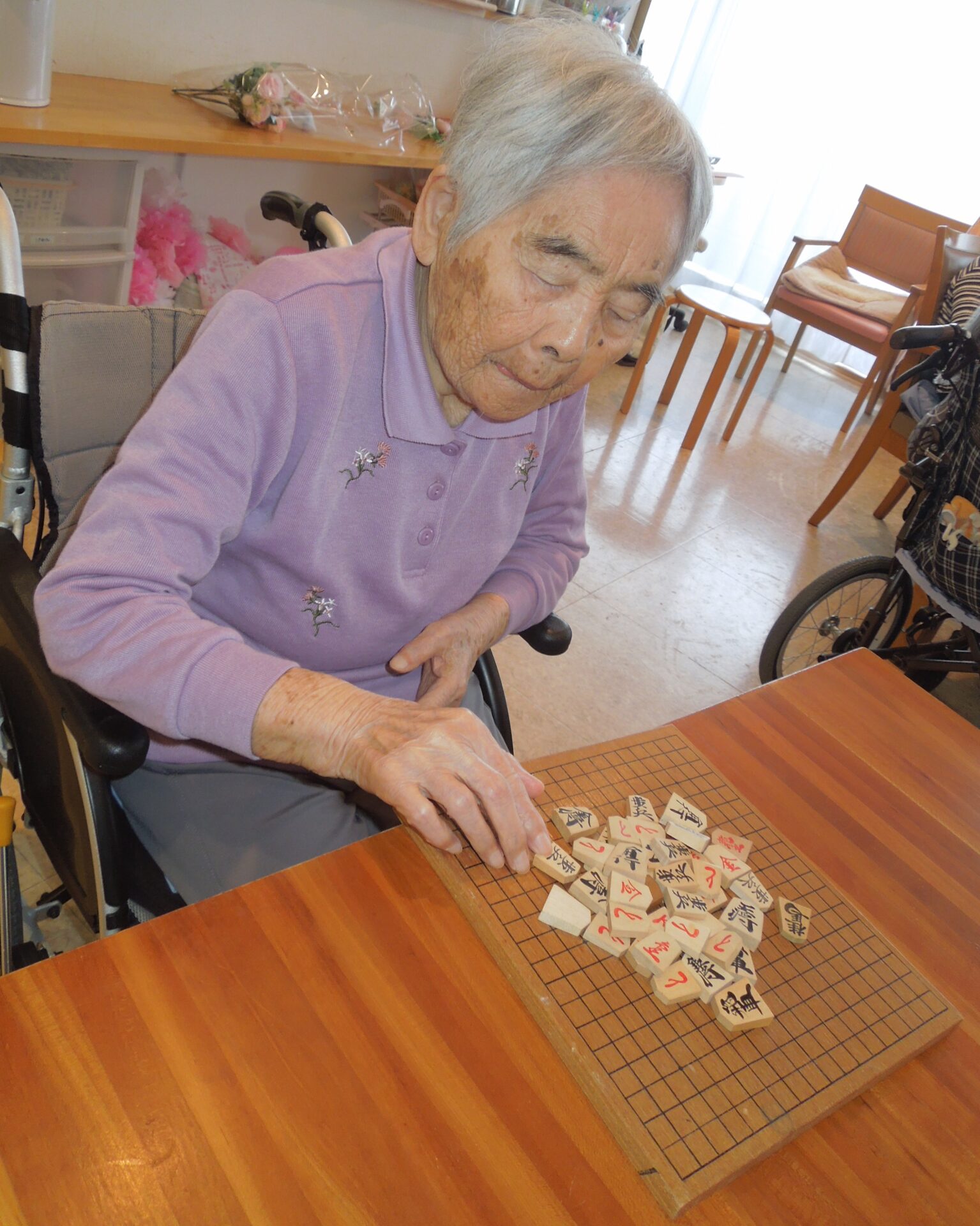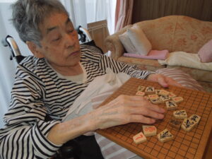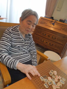 歌、漢字プリント、将棋倒し など、ご自身がやりたいことを真剣な眼差し・和やかな表情で毎日取り組まれています(^_-)-☆