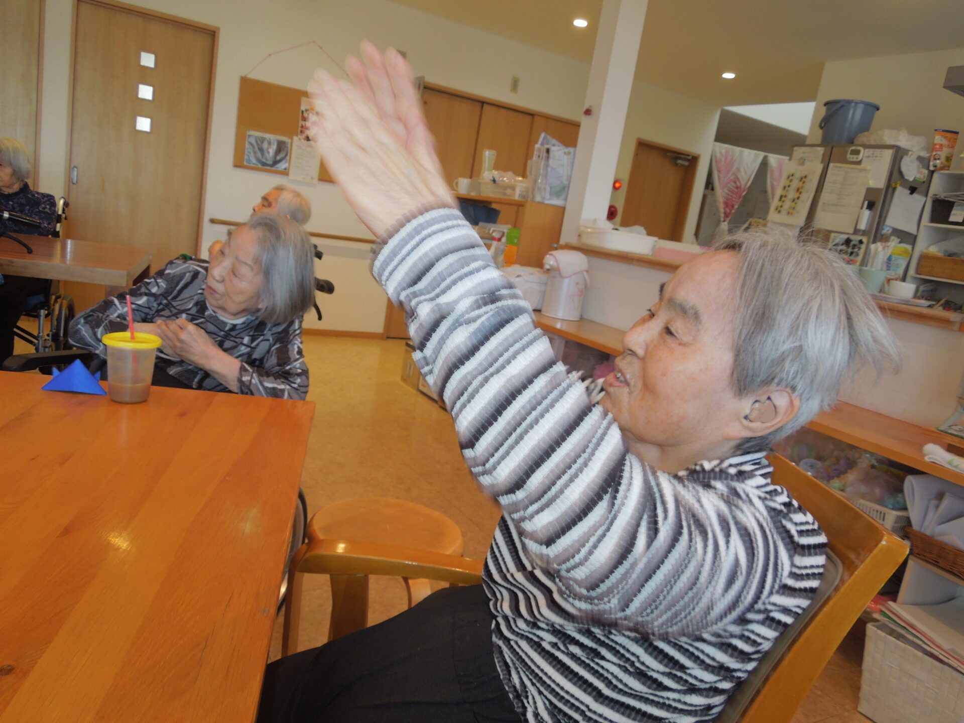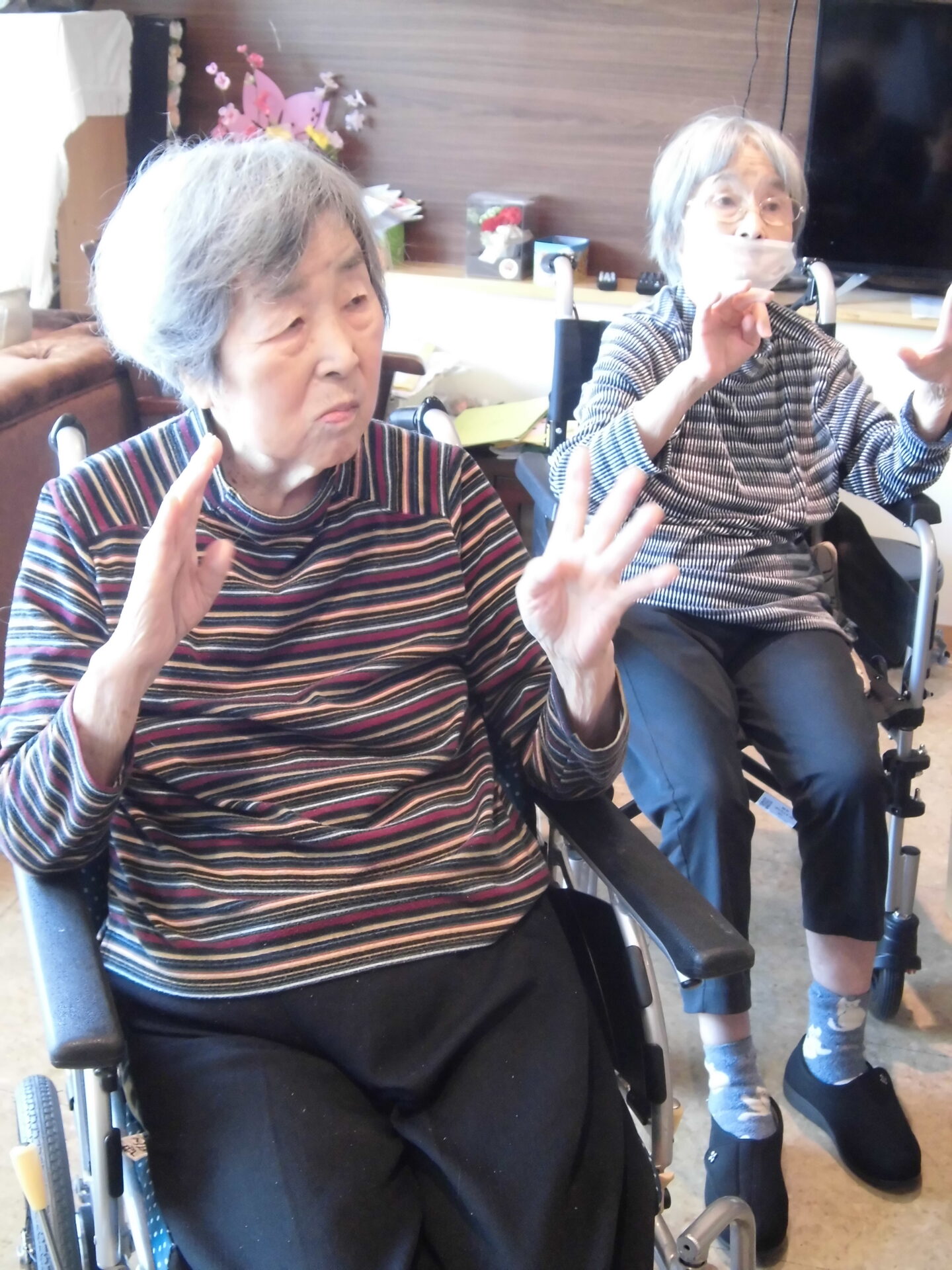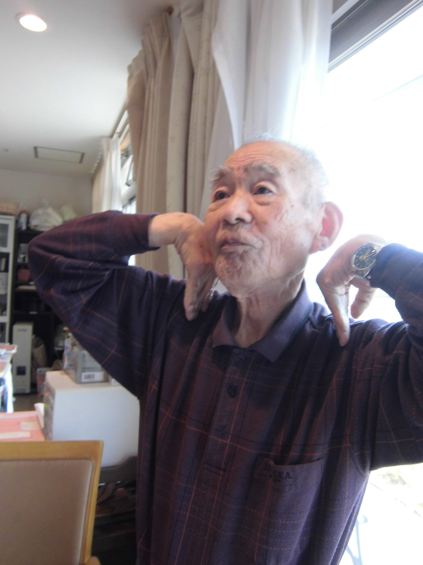 毎日体を動かされています‼ しっかり足も手も上がっていますね~!(^^)! お元気で嬉しいです(*^^)v